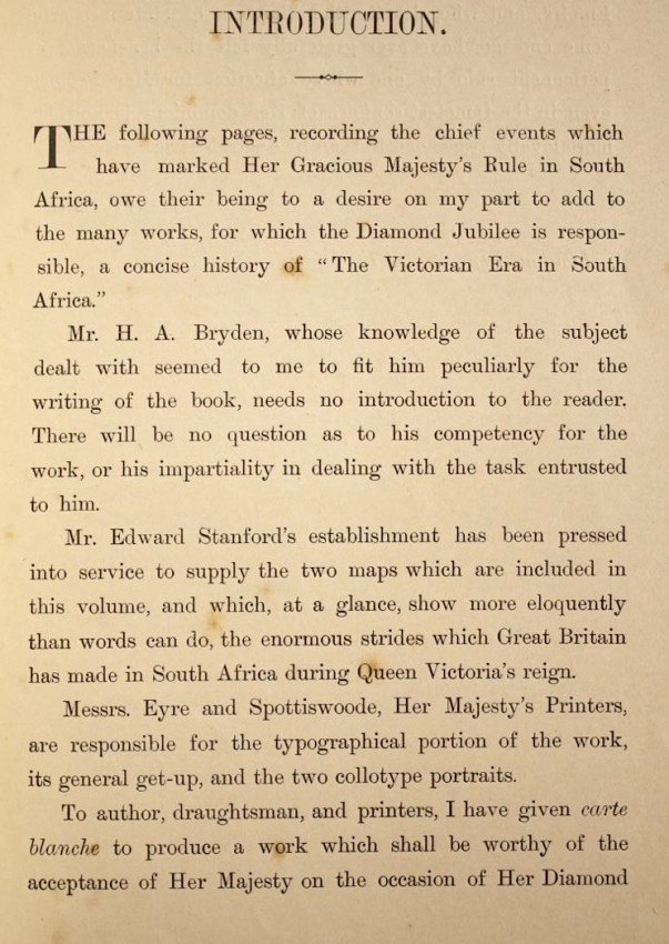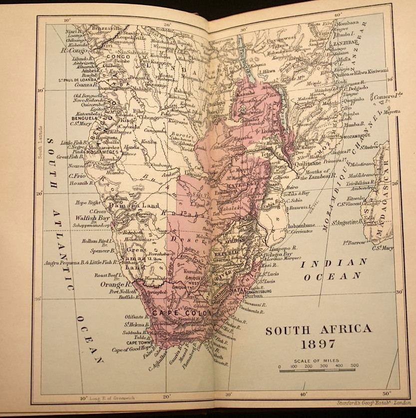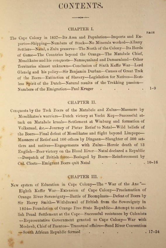 'An account of South Africa during the first sixty years of Queen Victoria's reign. The history embraces all the salient occurrences of this period including the subjects of dispute between the Dutch and British systems of government, which ultimately culminated in the South African War of 1899-1902. Of Mr. Rhodes it is remarked that he "is a man of vast ambitions and of very strongly developed will power," and Paul Kruger is characterised as being, "within his somewhat narrow limits, an extremely able man." It is stated that one of the effects of the Raid was that "A great wave of Afrikander resentment swept over Africa" ; but the opinion is expressed that "President Kruger and his advisers, in spite of recent armaments, are not likely to push matters to the arbitrament of war." There are two maps, one showing the British possessions in South Africa in 1837 and the other in 1897.' - Mendelssohn Vol. 1, page 211