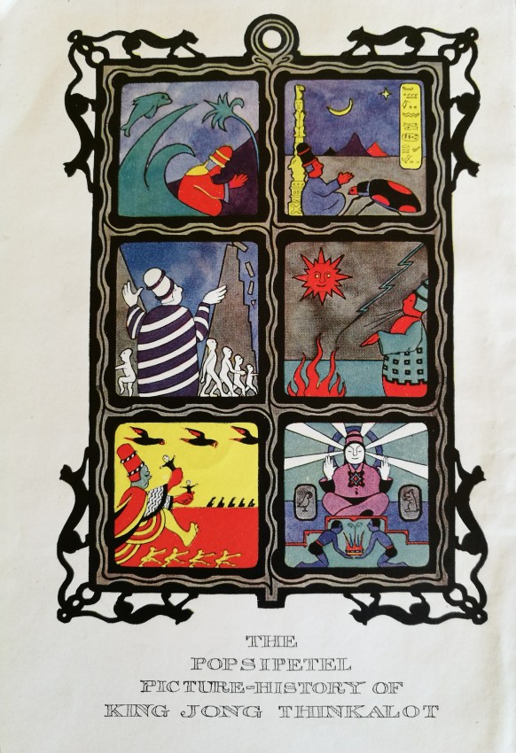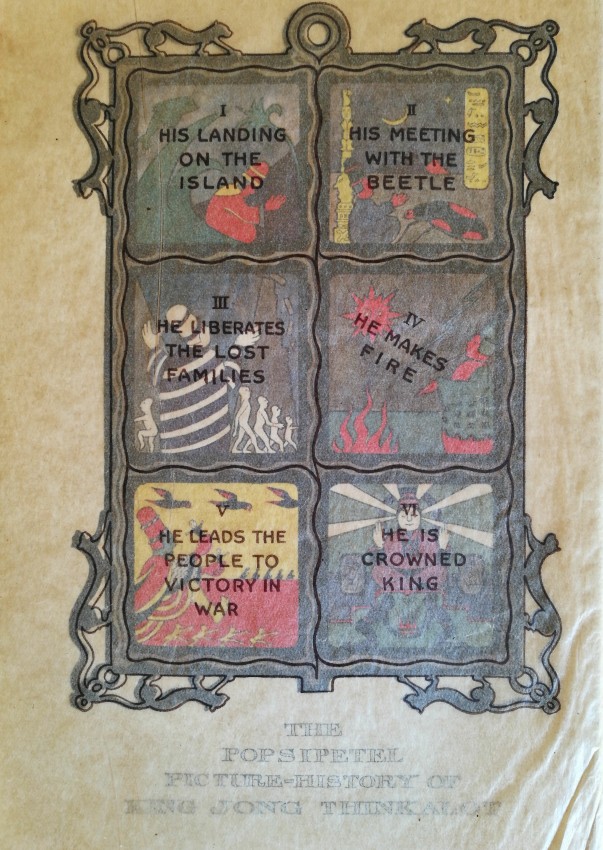 Grey cloth-boards with brown design and lettering front, back and spine, blue, yellow and white design to the endpapers, spectacular colour frontispiece (see image) with printed tissue-guard, 320 pp of b/w-illustrated text.