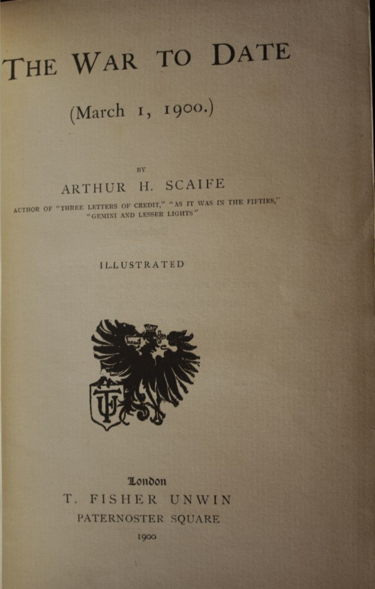 'A compilation giving a short synopsis of "Boer History," and an account of the South African War (1899-1902) , up to the relief of Ladysmith. The appendices contain a "Diary of the War," "Biographical notes of British and Boer officers commanding at the front, and prominent politicians in South Africa," and a "List of officers killed, wounded, and missing from commencement of war to the relief of Ladysmith." ' - Mendelssohn Vol.II, page 272