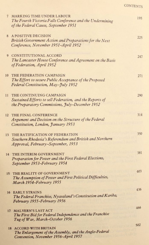 'The product of eleven years research, this first major history of the Federation of Rhodesia and Nyasaland,, 1953-1963, (supplemented by Lord Blake's masterly foreword) is based on Sir Roy Welensky's unique private papers.
