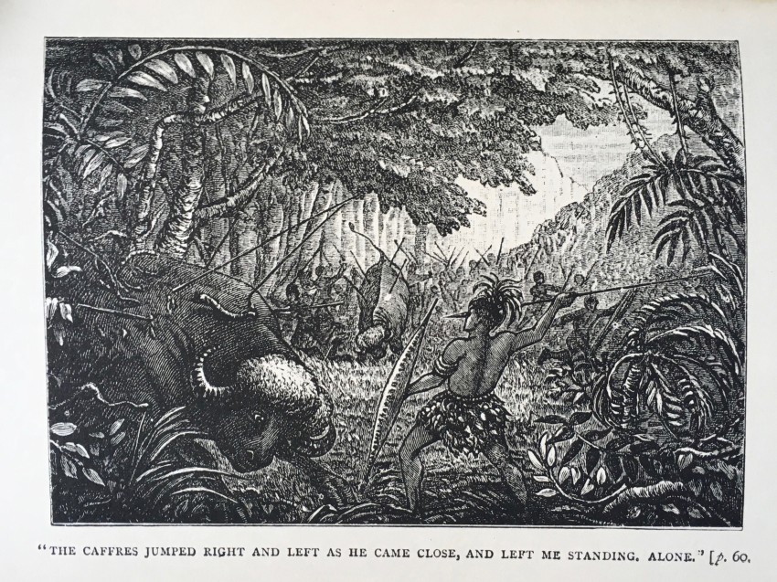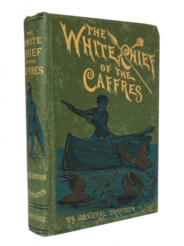 315pp + 6pp. Original green illustrated binding with bevelled edges shows a boy in a canoe warding off three ‘caffres’, another ‘caffre’ on the spine, bright gilt titling on top board and spine, numerous woodcuts.Occasional foxing, slight lean, the cloth binding is flecked, endpapers have separated along the gutters. A good copy of this scarce title (only 13 OCLC listings mostly US and UK with only one South African listing and none in Australia).
