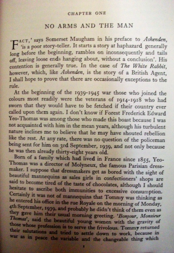 From the blurb: "It may be too soon to judge whether the [Second World] War produced great literature, but it has certainly thrown up some amazing tales of individual adventure and courage - and there can surely be few to equal that of Yeo-Thomas . . . How Tommy spent the 'phoney' war in the ranks of the R A F, was commissioned after the fall of France and thereafter became a specialist in organising Resistance is told in these pages . . . [He was also] one of he few British survivors of Buchenwald . . ."