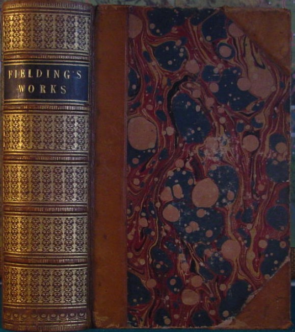 Literary works of English novelist and dramatist known for his rich earthy humour and satirical prowess. In contemporary half calf with marbled boards. Covers showing a little edgewear and the lavish gilt decorations on the spine are slightly rubbed. The front hinge is cracked but holding; slight foxing of frontis and plates. 1116 pp with engraved plates by G Cruikshank, all present.