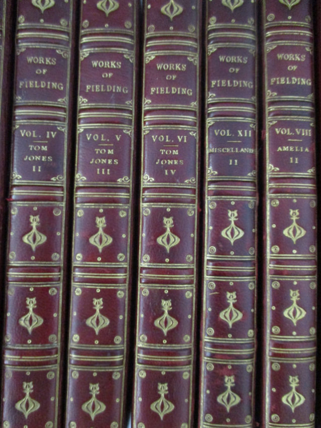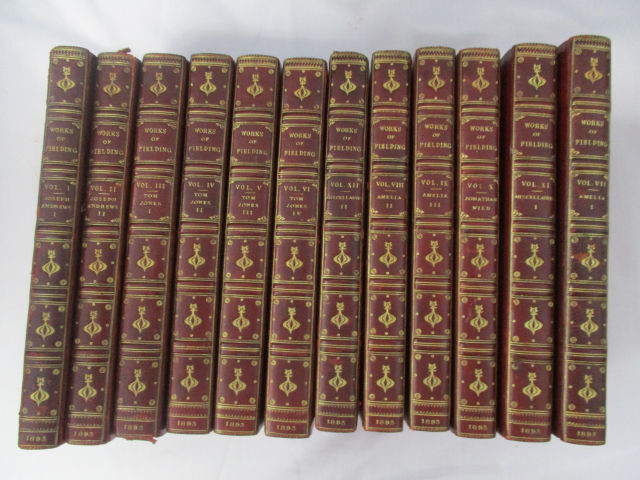 3/4 leather with gilt lettering and vignettes - marbled inset. Marbled endpapers. Black and white illustrations - gilt page tops. Previous owners book plate on paste downs. Foxing opposite title pages but internally clean. A beautiful clean set.