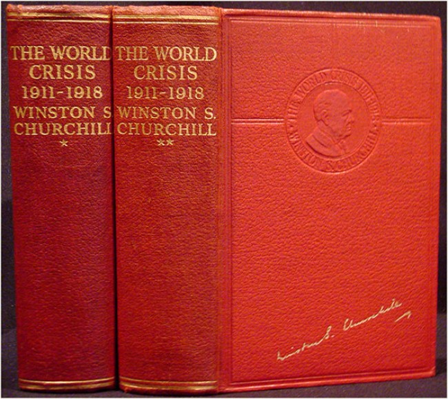 2 volumes, 1477 pages, original red simulated leather binding with Churchill's signature embossed in gilt on the upper covers - a little dull and soiled, marbled endpapers, a good set.