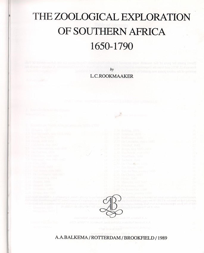 All their books, manuscripts, and drawings concerning mammals and birds are listed and discussed. Many of the contemporary drawings, largely unpublished, have been included. This book gives details on four collections of more than 300 mammal and bird drawings connected with Levaillant's research, hitherto totally unmentioned in other publications. Many examples are illustrated, 16 of them in colour. The zoological contents of the material left by these seven explorers and their predecessors are analysed for all mammals and birds emphasising the history, taxonomy, nomenclature and zoogeography. This includes many details on species now extinct, like the lion and rhinoceros of the Cape, the quagga and the bluebock.