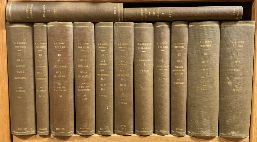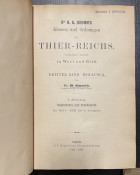 Dr. H.G. Bronn's Klassen und Ordnungen des Thier-Reichs -- 13 volumes issued over nearly 100 years. Original issues uniformly bound in olive green cloth. An essential reference,