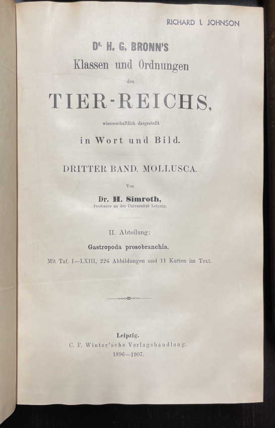 By Bronn, H. G. (Heinrich Georg), 1800-1862; Gerstaecker, A. (Carl Eduard Adolph), 1828-1895; Hoffmann, C. K. 1841-1903; Keferstein, Wilhelm Moritz, 1833-1870; Ortmann, A. E. (Arnold Edward), 1863-1927; & Heinrich Simroth, 1851-1917