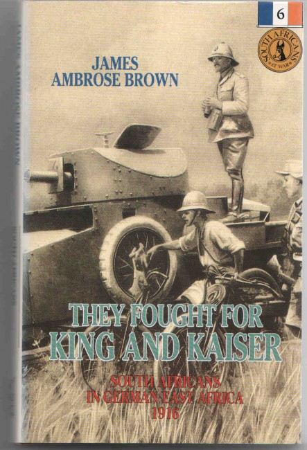 8vo; original rust-coloured boards; laminated pictorial dustwrapper; pictorial endpapers; pp. xix + (i) + 374, incl. index; maps; monochrome illustrations throughout. Trace of spotting to top edge; spine panel a little sunned. Near fine condition. "In this book James Ambrose Brown does more than write a campaign history: he draws the reader into the emotional and national frenzy of colonial politics in German East Africa during the 1916 - 1918 campaign and the annexations of African territories that preceded it. This sets the stage for the narrative that chronicles the major role that South Africa played in this war in tropical Africa. It was a campaign in Tanganyika remarkable for the suffering, hardships and stubborn courage on both sides. This story of human endurance is presented with the freshness of personally recorded experiences of officers and men who fought in what is now called Tanzania, and tells for the first time the important function that South African volunteers played under the command of General Jan Smuts. Smuts's relentless drive to achieve a quick victory was thwarted by the soldierly abilities of Colonel (later General) von Lettow-Vorbeck. There were appalling losses on both sides as men and animals succumbed to tropical diseases and starvation. German East Africa had the highest losses from sickness of any theatre in World War I, and South Africa alone invalided home 12 000 men unfit for further service in the tropics. A complete list of casualties that resulted from this campaign is included. In twelve months Smuts achieved his territorial objectives: to cross the Rufiji River and occupy most of the country; but it was a war that he would never win."