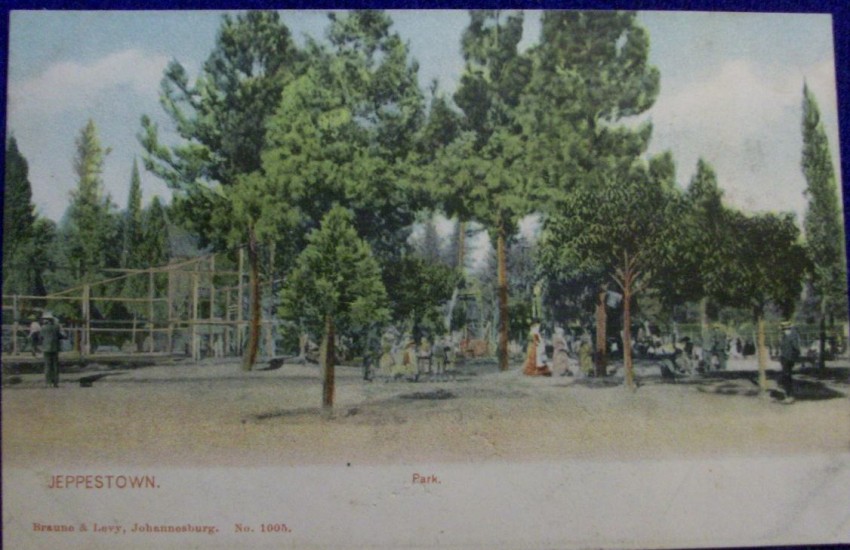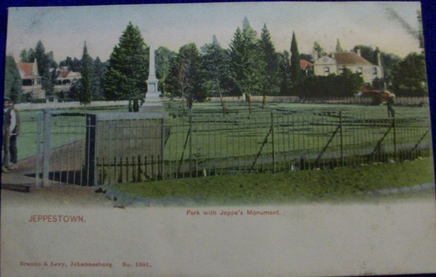 Jeppestown-Park with Jeppe's Monument. No.1001. Coloured