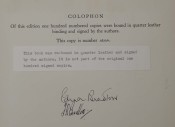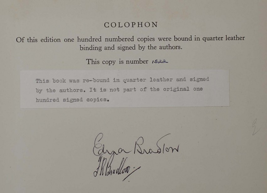 This copy is number 1522 of the standard edition, which has been rebound in quarter leather and signed by the authors. Overall, both the binding and the book are in very good.