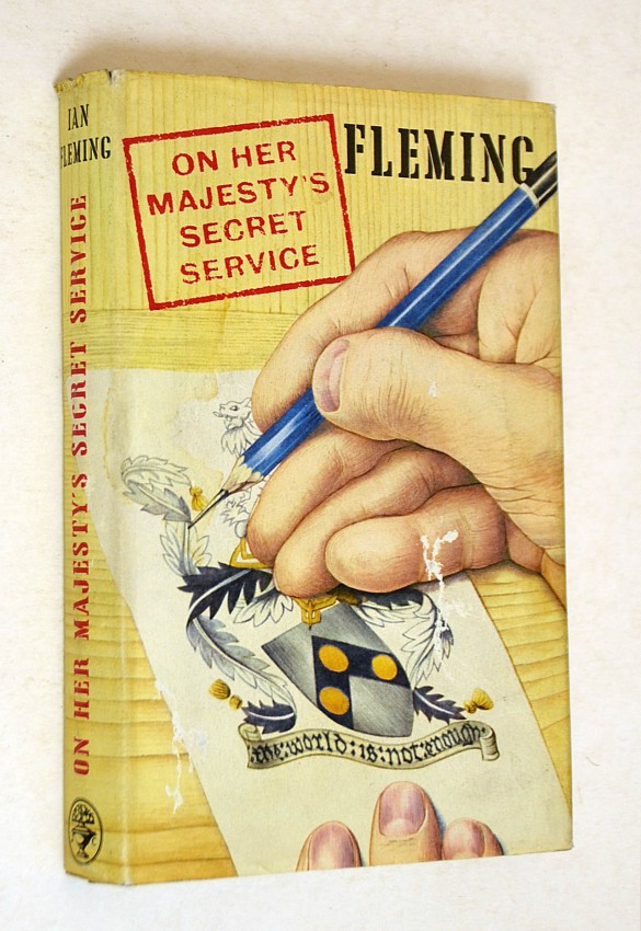 1. On Her Majesty's Secret Service. Cape. 1963. 1st. Edition, 1st. impression. A near fine clean unmarked and unfoxed copy in a very good minus dustwrapper which is price clipped, has slight fraying at the top of the spine, a small abrasion on the front panel and some light staining (probably damp) mainly affecting the rear panel and more noticeable internally than on the outside.