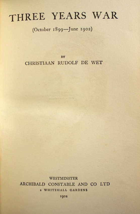 520pp. Frontispiece of General De Wet with maps in text and fold-out map at rear.