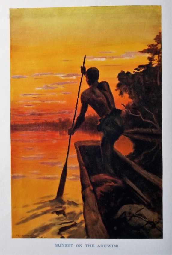 Beautiful tissue-guarded frontispiece of "Sunset on the Aruwimi."