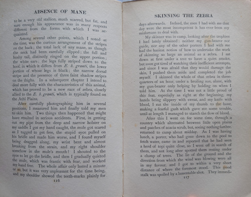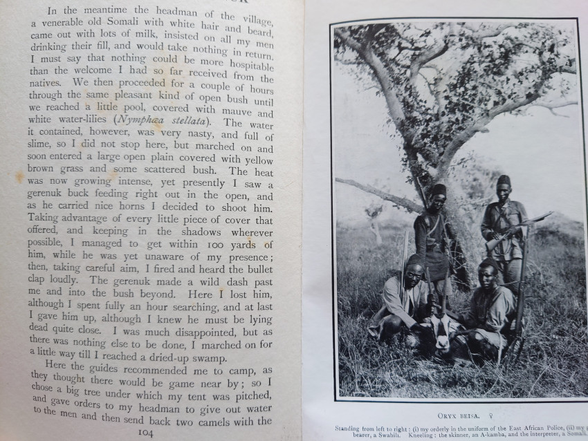 "Dracopoli explored the region from Kismayu on the coast, then westward to the Lorian Swamp in British East Africa. In the Joreh district, he bagged oryx, gerenuk, hartebeest, zebra, and topi. Upon reaching the Lorian district, the author collected waterbuck and gazelle. His descriptions of the terrain and climate are especially interesting.