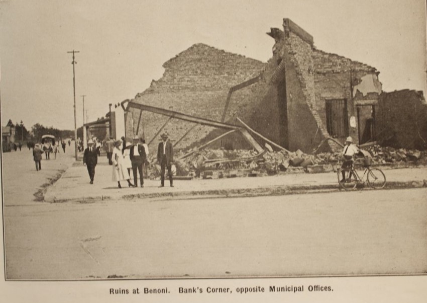 Two pages of text by Ernest Glanville. The second edition contains more photographs, together with a diagram showing where the chief incidents of the revolt took place.