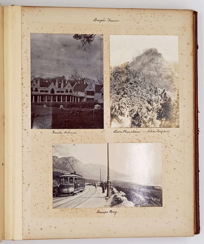 The tour follows a common route for tourists visiting Southern Africa in the years after the Anglo-Boer War 1899 – 1902 via Teneriffe, Las Palmas, Cape Town, Durban, Mount Edgecombe, Henley, Colenso, Ladysmith (Wagon Hill), Johannesburg, Pretoria, Modder River, Bloemfontein to Kimberley, The Matopo Hills, Victoria Falls, Umtali, Mozambique, Mombasa, Egypt and On the Way Home on board the Durham Castle.