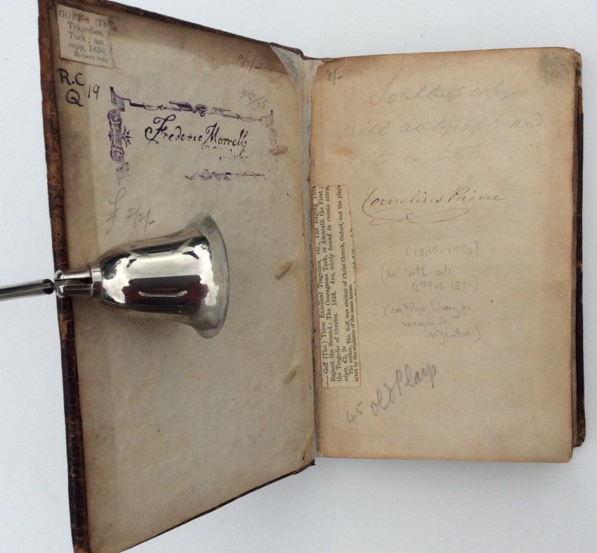 "Thomas Goffe was an active playwright during his days at Christ Church. Since it is unknown the order in which his plays were written, scholars believe that his first play was most likely The Raging Turk, also titled Bajazet II. The play is a tragedy and was produced at Christ Church circa 1613-1618. However, the play was published after his death in 1631. Goffe’s second play in believed to be The Tragedy of Orestes which was produced circa 1613-1618 and published in 1633. His final play produced at the Christ Church was The Courageous Turk, or Amurath the First. It was produced on 21 September 1618 and published in 1632. All of his plays were published in 1 volume as Three Excellent Tragedies in 1656....
