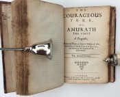 The Courageous Turk breaks into two parts. The first part is concerned with Amurath’s passion for his concubine Eumorphe, his officers’ discontent with Amurath’s affair, and death of Eumorphe. The second part contains a series of events consisting of Amurath’s various war exploits in Serbia (Battle of Kosovo), the Christians’ martial confusion, the marriage of Amurath’s son Bajazet to Hatam, Amurath’s conflict with his son-in-law Aladin, the mutual stabbing deaths of Amurath and the Christian Capitan Cobelitz, and the raising of Bajazet to Emperor with the subsequent death of his brother Jacup." (wikipedia).