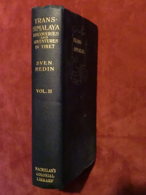 Volume 2 only, in good condition, gilt spine and cover titles, end-papers and page edges foxed, black and white portrait frontispiece, 450pp. plus 8pp. index. Hedin discovered the source of the Indus river (Singi-tsangpo) with the help of black Tibetan guides. A scarce book.
