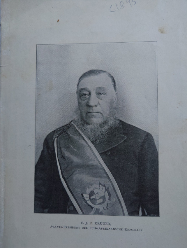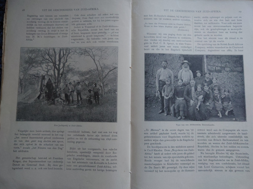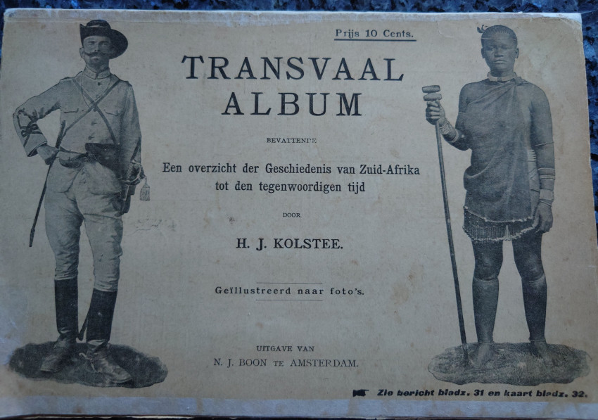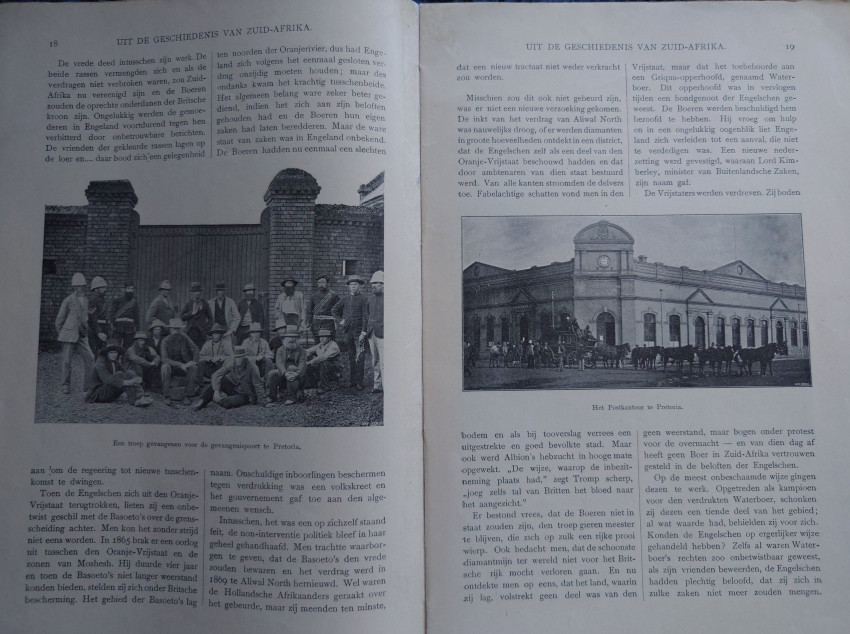 Amsterdam, N.J. Boon, 1895. Very good original pictorial soft covers. 32 pages. Internally very good with black and white ills throughout the text. Map. Text in Afrikaans/Dutch. Very scarce.