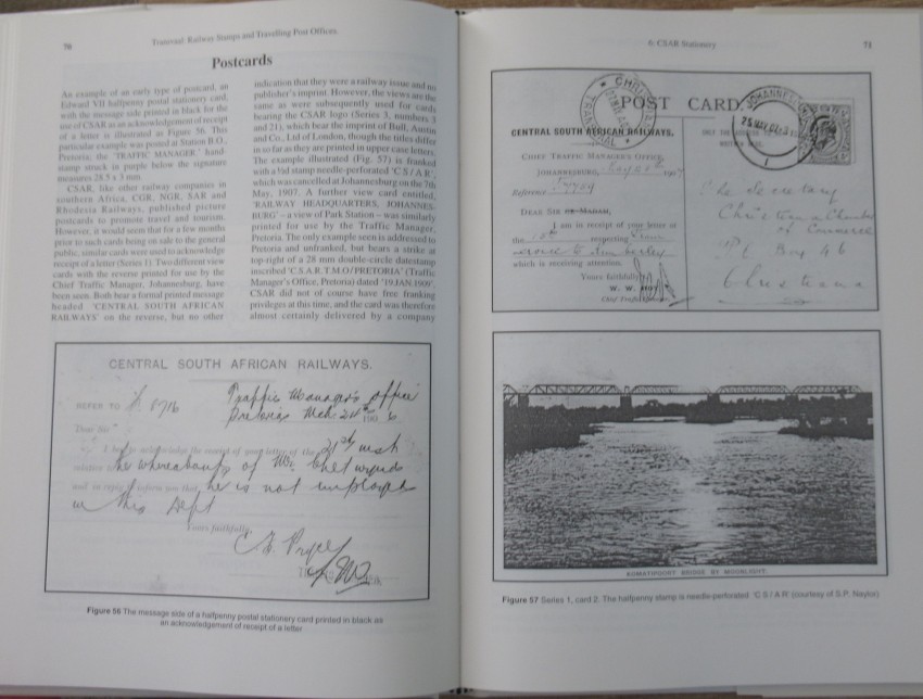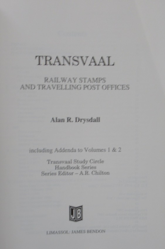 This work describes and lists the railway stamps, stationery and station handstamps. The adhesives include both stamps produced to receipt payments for parcels, and stamps stencil-cut, overprinted or needle perforated especially for the use of the railway administration. The handstamps include those that were used only to identify the name of the station, date stamps used both by stations and post offices sited at stations, and the date stamps used by the various travelling post office services operating within and to or from the Transvaal.