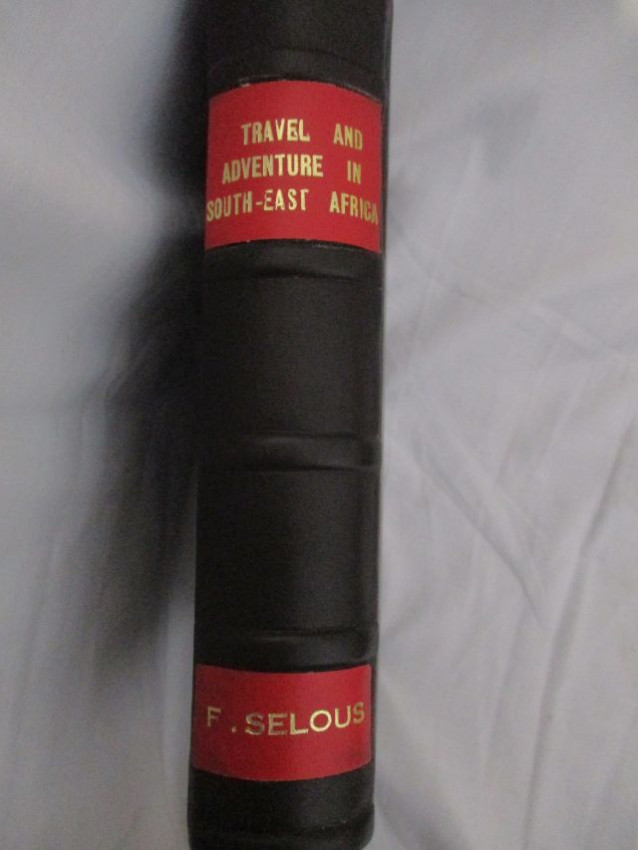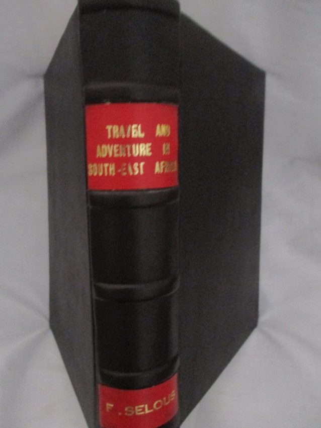 Rebound in black leather with red title strips with gilt lettering. New end papers. Ex Libris plate and purple oval stamp " Queen Victoria Memorial Library Salisbury S,R" Frontispiece plate of Frederick Selous. Fold out colour map at rear of book. Numerous black and white plates and illustrations within text. 503 pages.