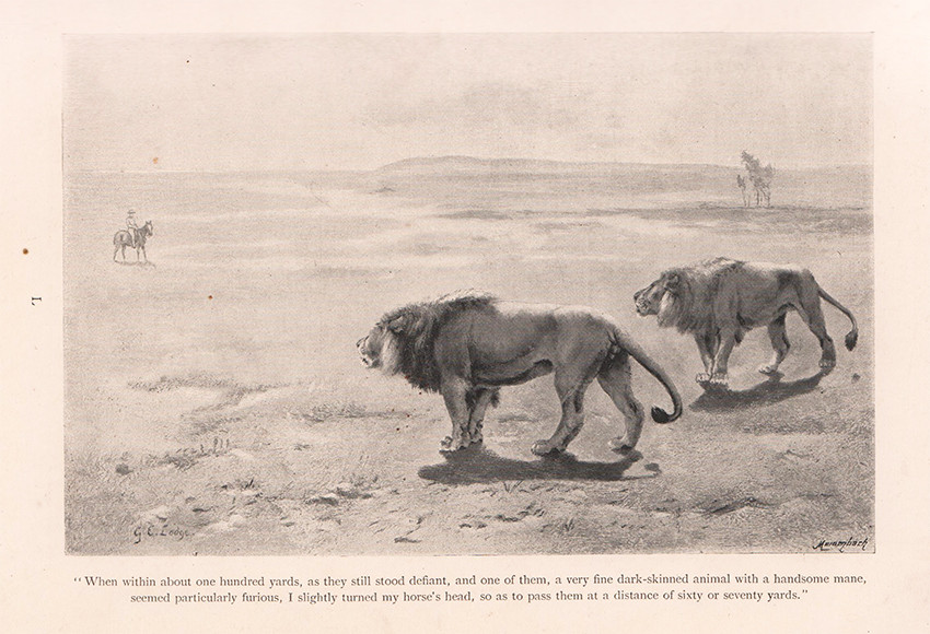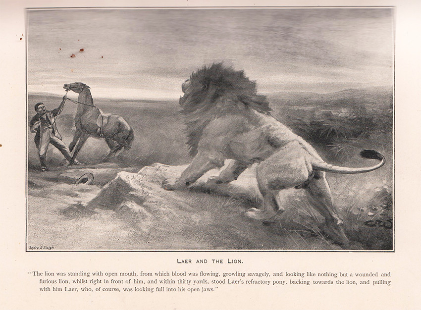 Czech (Kenneth) An annotated bibliography of African Big game hunting Books 1785 -1999, page 251 - 252, 'In this work recounting eleven years of exploration, work and sport in the 1880's and 1890's, Selous describes numerous adventures with lions and leopards, particularly near the Zambezi, Zweswi, and Manyami Rivers, with additional sport after rhinoceros, eland and hartebeest. After returning to the Transvaal, he linked with Montague Kerr and travelled into Matabeleland. Selous hunted more lions and rhinoceros, and vividly depicts an elephant hunt near the Zweswi River. In 1886, he hunted through Mashonaland, but was forced to escape after his camp was destroyed by hostile tribesmen. Eventually reaching the Zambezi, he hunted lion and lost a canoe to a hippopotamus. He concludes with a chapter on rifles, and another reflecting earlier sporting adventures after elephant, rhinoceros, buffalo and others.'