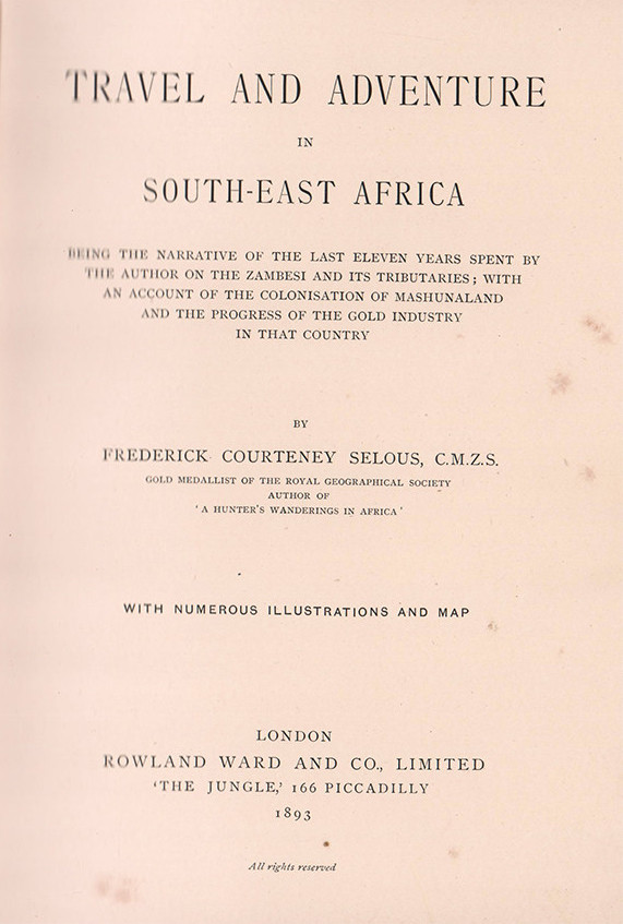 Czech (Dr. Kenneth P.) An Annotated Bibliography of African Big Game Hunting Books 1785-1999 (Second enlarged edition, Trophy Room Press, 2011), pages 251-2 , 'In this work recounting eleven years of exploration, work and sport in the 1880's and 1890's, Selous describes numerous adventures with lions and leopards, particularly near the Zambezi, Zweswi, and Manyami Rivers, with additional sport after rhinoceros, eland and hartebeest. After returning to the Transvaal, he linked with Montague Kerr and travelled into Matabeleland. Selous hunted more lions and rhinoceros, and vividly depicts an elephant hunt near the Zweswi River. In 1886, he hunted through Mashonaland, but was forced to escape after his camp was destroyed by hostile tribesmen. Eventually reaching the Zambezi, he hunted lion and lost a canoe to a hippopotamus. He concludes with a chapter on rifles, and another reflecting earlier sporting adventures after elephant, rhinoceros, buffalo and others.'