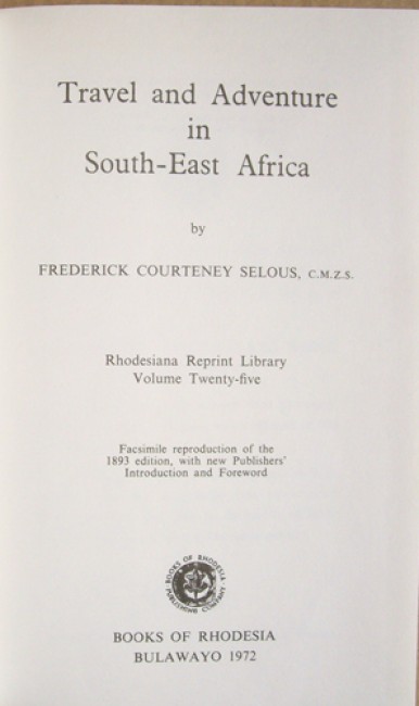 Original brown boards with black titling and gilt decorations on the spine and the upper board. Original dust jacket. Dark violet end papers. In addition to the original text is the Books of Rhodesia title page, introduction and foreword. The original text, illustrations, coloured folding map, publisher\'s advertisements at the rear, are all reproduced faithfully in facsimile.