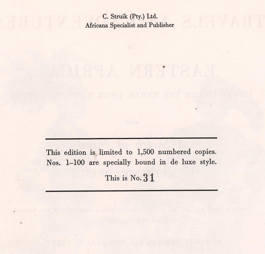 349 pages, colour frontispiece and four colour plates by G.F. Angas from 'The Kaffirs Illustrated', map, 10 black & white plates, brown imitation leather with gilt vignette and decoration on the upper cover, titled gilt on the spine, a very good copy.