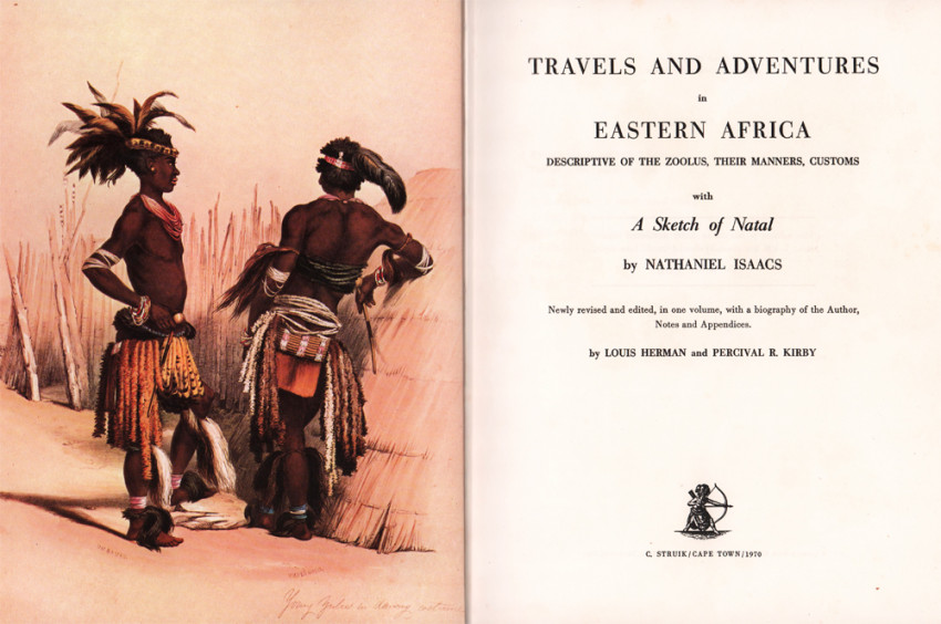 ‘What is known of the life story of Nathaniel Isaacs presents a strange contrast to the background of respectable, bourgeois, Anglo-Jewish families of Kent whence he issued. Natal pioneer and explorer, ivory hunter and trader, temporary subject of the ferocious Zulu tyrant, Chaka, and courtier at the Great Kraal, this would-be empire builder begins a fresh career at the age of 24 on the west coast of Africa. There as merchant and shipper and proprietor of a tiny island, his activities, not all creditable, are hardly less remarkable; and in the end, he retires and settles down in England two years before his death as "Nathaniel Isaacs of Kentville, Egremont, in the County of Chester, Gentleman." Louis Herman.