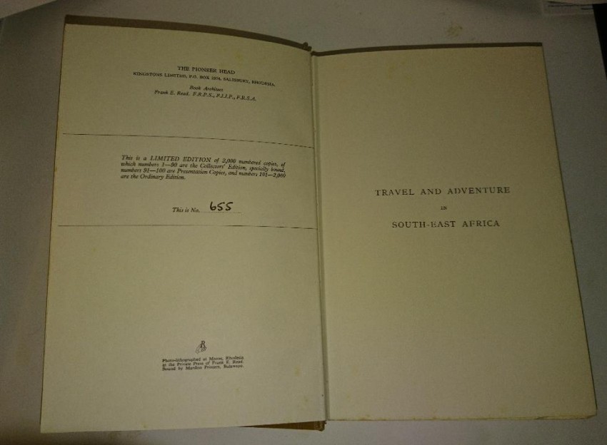 A narrative of eleven years spent by the author on the Zambesi and its tributaries with an account of the colonisation of Mashonaland and the progress of the gold industry in that land. Hardcover, Brown boards with gold print, no dustjacket. Numerous illustrations and map. Heritage Series Vol 5, Limited edition Facsimile No. 655 of 2000