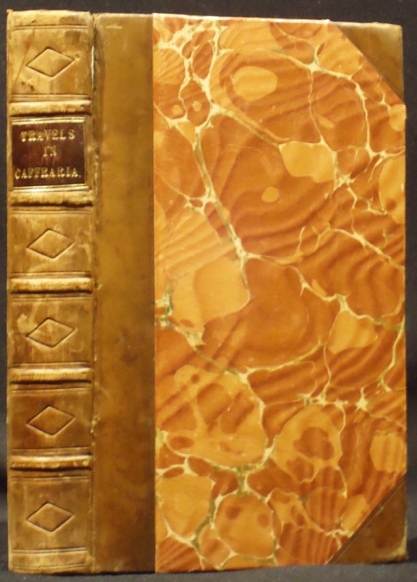 xvi, 509 pages, engraved frontispiece and 4 engraved plates, folding map (carelessly folded and torn at the folds), half calf with marbled paper sides and endpapers, gilt title label on the spine. The plates are lightly browned and foxed, a good copy only.