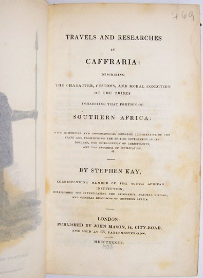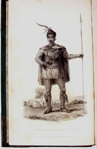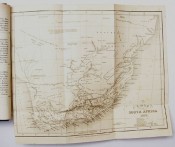Later three quarter green leather binding with gilt titling on the spine, raised bands and green pebble grained cloth. Decorated end papers. W.H. Coetzer book plate on the front paste down. xvi prelims, 509 pages, linen backed folding map, 5 black and white full page engravings with tissue guards, including frontis.