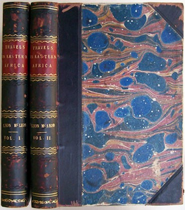 Two volume set. Bound in a period binding with with leather spines and corners with gilt decorations on the spines. Red title labels on the spines and marbled paper boards. Later brown end papers.