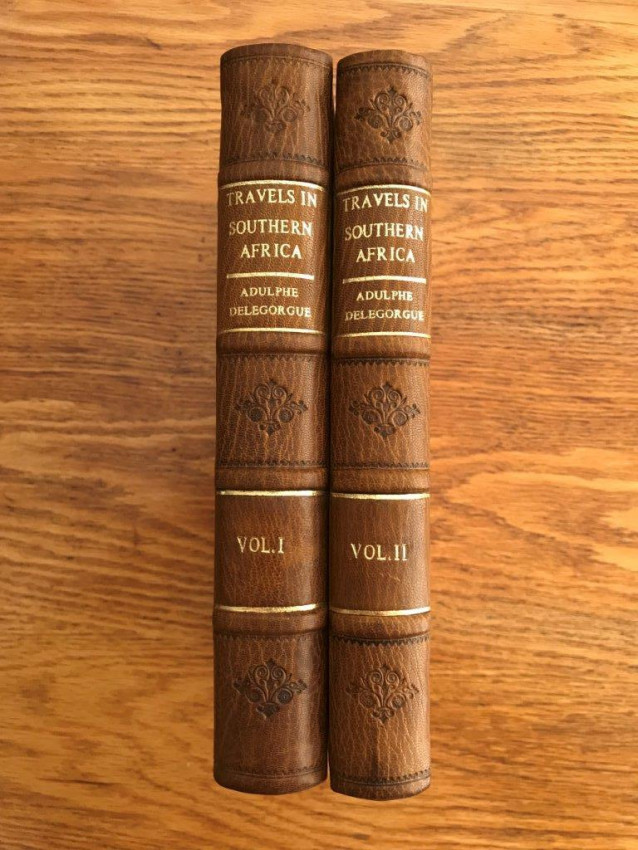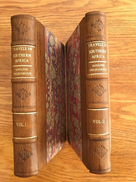Delegorgue’s two-volume set of travels in southern Africa was first published in 1847. The first English translations were published seven years apart by the Killie Campbell Africana Library; Volume 1 in 1990 and volume 2 in 1997. This is an important work on southern African hunting, travel and exploration but, sadly, they were published as paperbacks. This set has, however, been handsomely rebound in modern brown goatskin and will grace any collector’s bookshelves.