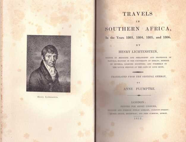 "Henry Lichtenstein, doctor in medicine and philosophy, and professor of natural history in the University of Berlin, member of several learned societies, and formerly in the the Dutch service at the Cape of Good Hope" [title page of first edition] managed to travel extensively in the four years he spent at the Cape, and his observations are free of much of the prejudice which coloured many of his contemporaries' writings.