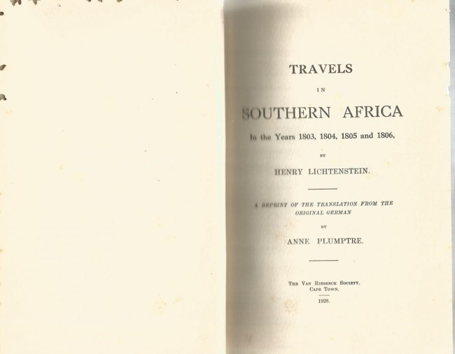 The author was a respected professor of natural sciences from the University of Berlin. He accepted the position as a doctor and accompanied the new British Governor, General Janssens, on a tour of the Cape, starting in Kaffraria and then swinging across the Karoo and the northern Cape back to Cape Town. His descriptions of the animals and natural features of the country, as well as the native tribes encountered, particularly the Bechuanas, are extremely informative and remain a trustworthy classic of early travel and conditions in the interior.
