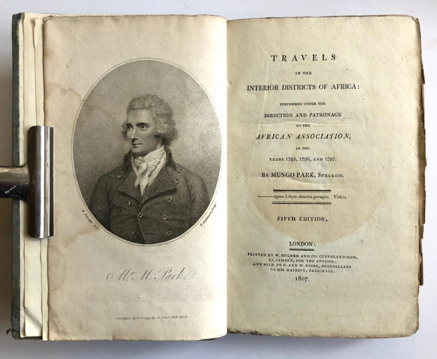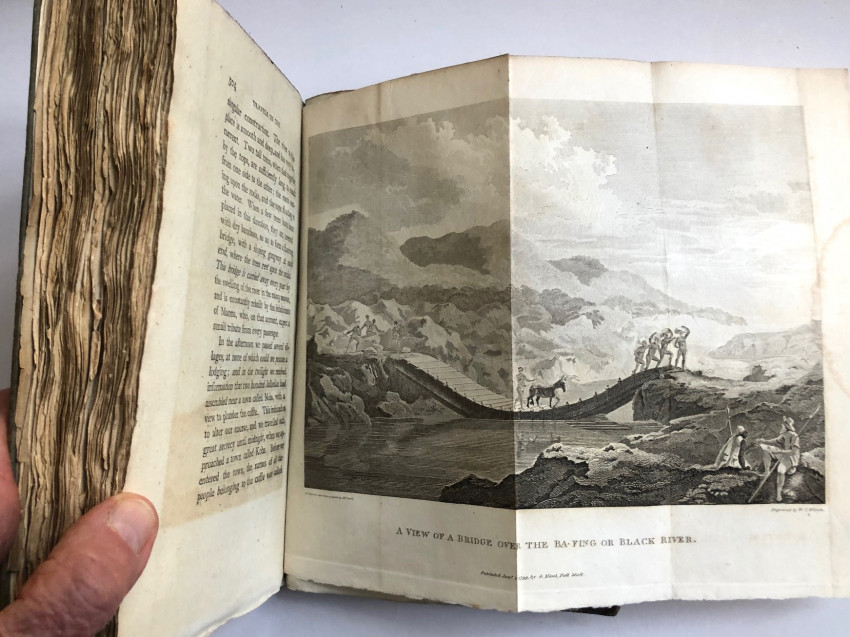 This is the 5th. Edition of this classic work in Octavo format published in 1807. 550pp. All edges uncut and a few pages unopened With the engraved frontispiece, a large folding map, three folding engraved plates and two full page engraved botanical plates. Not collated as there is no list of plates in this volume, but it appears complete. Simply rebound in 1/4 buckram and paper covered boards with the original label laid down on the spine. An unsophisticated copy. Calder House, 13.C. is written in ink on a preliminary blank page. The frontispiece and one of the folding plates have stains but otherwise this is a clean copy without any foxing.