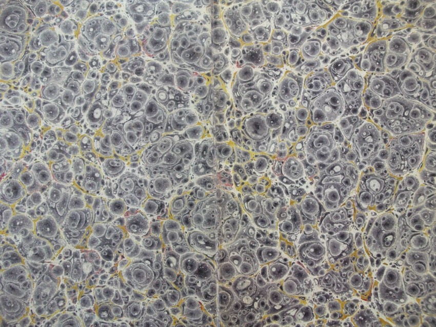 Half-bound in blue calf, patterned and decorated, with gilt title on red spine label, and grey patterned cloth-boards, Grey marbled endpapers. xvi + 218 pp + 2 frontispieces.