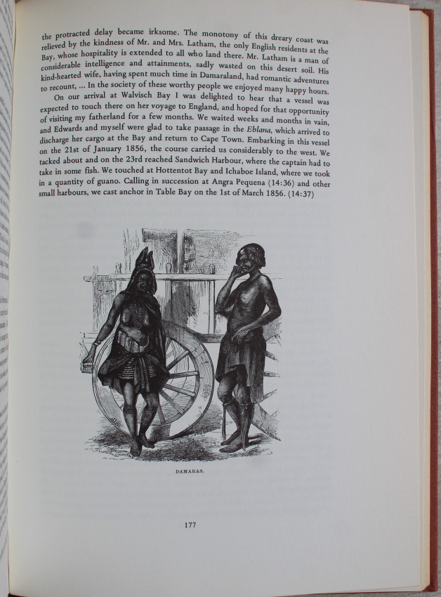 James Chapman was one of the greatest of the South African pioneers in the middle of the nineteenth century owing to the wide range of his interests and to his powers of observation and description. It has now been discovered that the published edition (1868) told only part of the story. It was severely cut by more than one editor and much interesting material was left out. This is evident from the original manuscripts, still in possession of his descendants. This present edition is based on the original manuscripts. Chapman’s first extensive journey as an elephant hunter and trader is told here with much more detail, and the second trip also differs considerable from the printed version. It brought Chapman to very near the Victoria Falls. Here he conceived the idea, which he was to pursue for the next ten years, of opening up the Zambezi to trade and navigation downstream from the Falls. Although he was unaware of it, this paralleled Livingstone's plan to open South Central Africa from either the west or the east coast. The story of Chapman's first determined attempt to reach the Zambezi via Hereroland and Lake Ngami in 1859-60 was omitted from the Travels and his account of it now appears for the first time. He returned to the Cape in March, 1860, to prepare for the final assault on the Zambezi. His account of this epic journey is the subject of the second volume.' Editor's note.