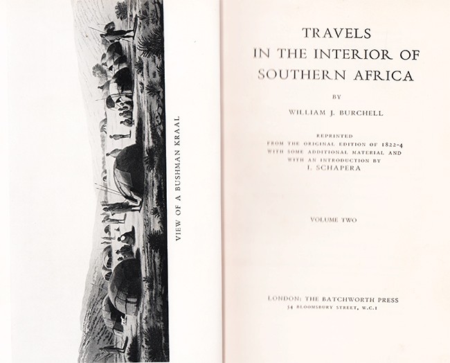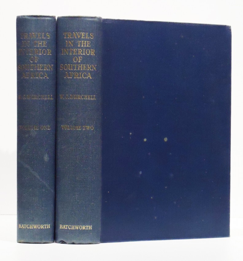 2 volumes. 381 + 473 pages, frontispiece in each volume, volume one is a portrait of Burchell, 2 folding maps, 15 plates - 6 coloured, numerous vignettes, edges uncut - light foxing mainly on the fore-edge, top edge dyed blue, blue cloth with some marks on the covers, titled gilt on the spines, a very good set.