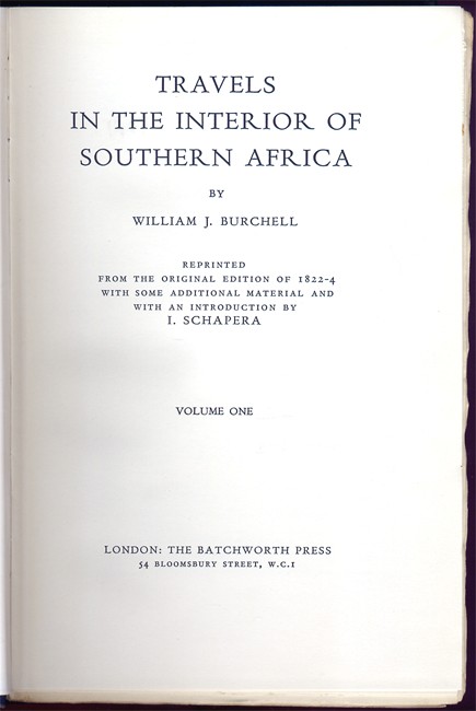2 volumes, reprinted from the original edition of 1822-4 with some additional material and with an introduction by I. Schapera.