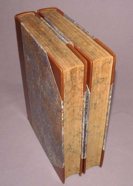 Finely bound in half brown leather with raised spine bands over marbled paper boards, leather corners, and marbled text block edges.