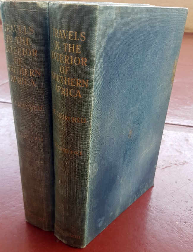 Blue cloth boards with gilt lettering to spine. Frontispiece portrait. Vol 1 - xxix, 381p, 7 plates, vignettes and fold-out map to rear. Vol 2 - xvi, 473p, frontispiece view of Bushman kraal, 8 plates, vignettes, fold-out map at rear. Slight fading to spine and boards damaged. Small 1cm tear to fold of map.