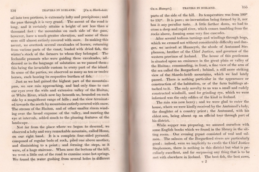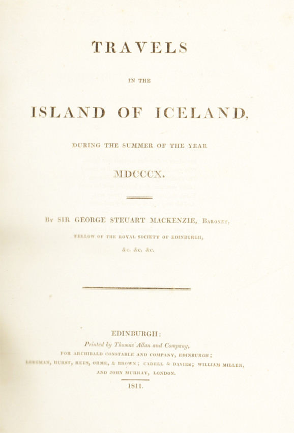 The pupil and friend of Professor Robert Jameson, Mackenzie throughout his life devoted much time to the study of mineralogy and geology. His interest in those subjects led him in 1810 to undertake a journey to Iceland, when he was accompanied by Dr. (afterwards Sir Henry) Holland and Dr. Richard Bright. In 1811 was published the 'Travels in Iceland,' the joint production of the three travellers. To this work he contributed the narrative of the voyage and the travels, and the chapters on the mineralogy, rural economy, and commerce of the island. Although the scientific portions of the book have long been superseded, it contains much information of permanent interest on the social and economic condition of Iceland. It was favourably reviewed by Robert Southey (Quarterly Review, vii. 48–92). Dictionary of National Biography, 1885-1900, Volume 35