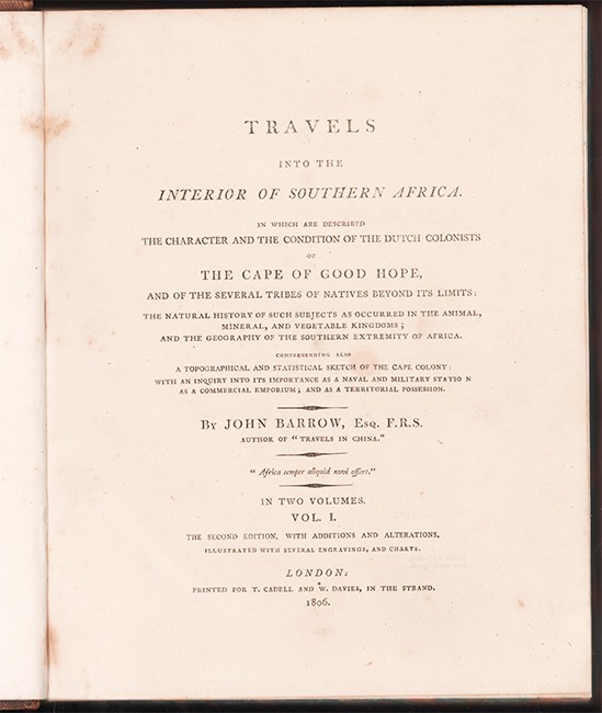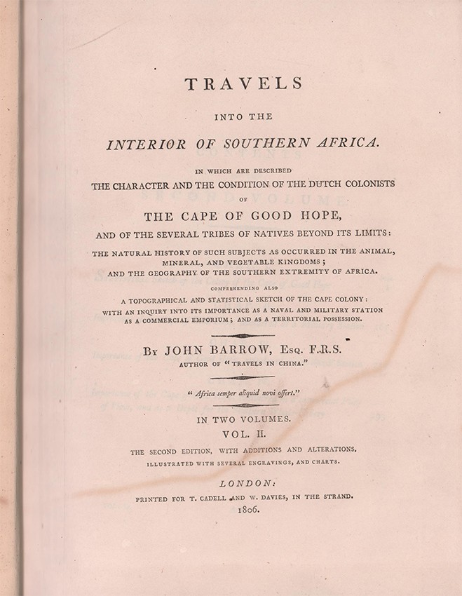 In which are described the character and the condition of the Dutch Colonists of the Cape of Good Hope, and of the several tribes of natives beyond its limits: The natural history of such subjects as occurred in the animal, mineral, and vegetable kingdoms; and the geography of the southern extremity of Africa. Comprehending also a topographical and statistical sketch of the Cape Colony: with an inquiry into its importance as a naval and military station; as a commercial emporium; and as a territorial possession in two volumes. The second edition with additions and alterations. Illustrated with several engravings and charts.