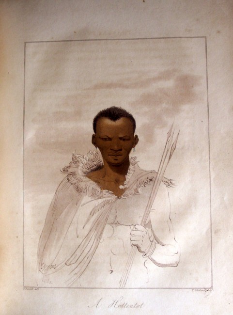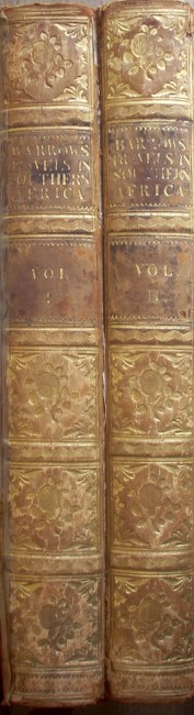 Two Volumes, second edition, with additions and alterations, illustrated with several engravings and charts, T.Cadell and W.Davies, in The Strand , bookplate, leather boards with raised bands on spine with floral motifs and lettering in gilt, all eight hand-coloured plates by Samuel Daniell are present in the first volume, also the three folding maps in the second volume are present, index, 215 x 265mm, some age-marks (brown) on maps and adjacent text blocks, also some tears and tape (on reverse) of South Africa map, condition:good to very good.
