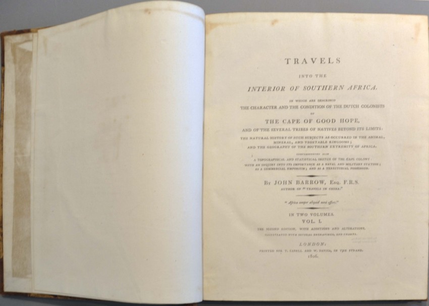 Volume One only of the 2nd. and best edition (1806) of this early classic work of Southern Africana (the first edition was published in 1801 and 1804). This edition is most prized for the eight wonderful hand coloured aquatints by Samuel Daniell, not present in the first edition, and all of which are contained in this first volume, making it most desirable, even as an odd volume.